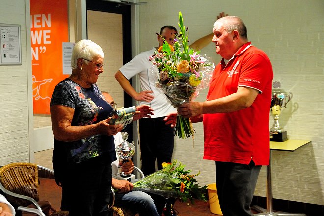 De organisatie had besloten vanwege het eerste lustrum een bijzonder iemand in het zonnetje te zetten. Corry Stein, de moeder van Karin, viel deze eer te beurt. Zij was volkomen overdonderd en nam beduusd het boeket en het cadeau in ontvangst. De reden: eind jaren tachtig en de jaren negentig zorgden zij en haar man Maap iedere wedstrijd voor verse hete soep voor mij, terwijl ik niet van hun vereniging was. Tijdens mijn bezoeken thuis werd ik altijd met grote gastvrijheid behandeld. Corry verdiende deze blijk van waardering. Wie volgt in 2020?